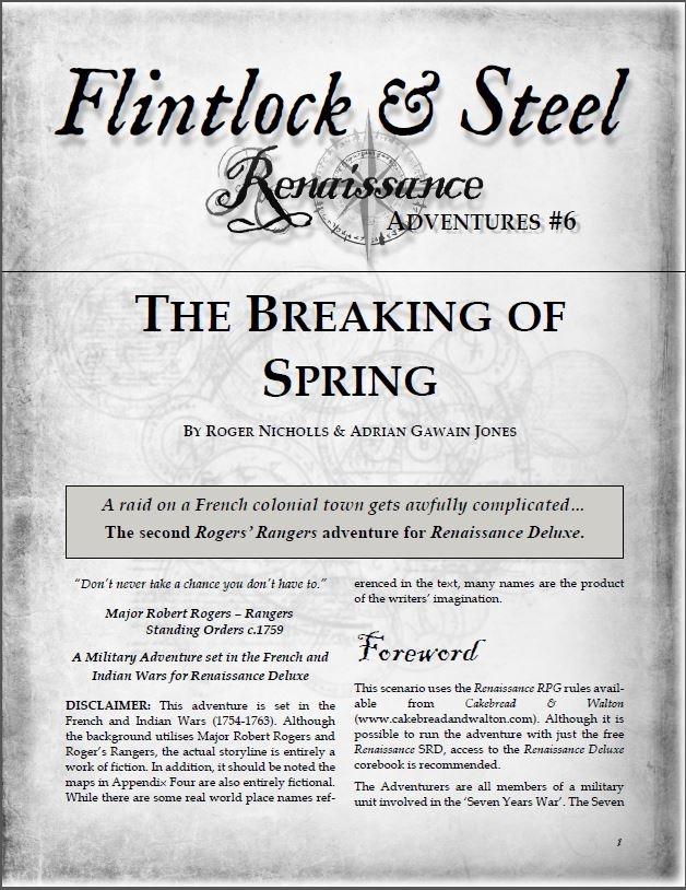A historical adventure for Renaissance Deluxe, and a follow-up to the first Rogers’ Rangers adventure, The Depths of Winter.