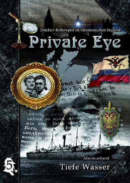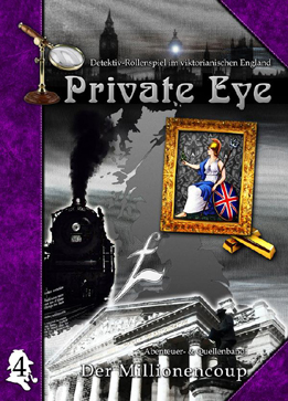 English translated edition of Private Eye. Corebook for the detective roleplaying system in den victorian time. With all rules, many informations about the victorian london and methodes of criminal investigation and an adventure. 256 p., hardcover, with DIN A1 colour map from London in 1895