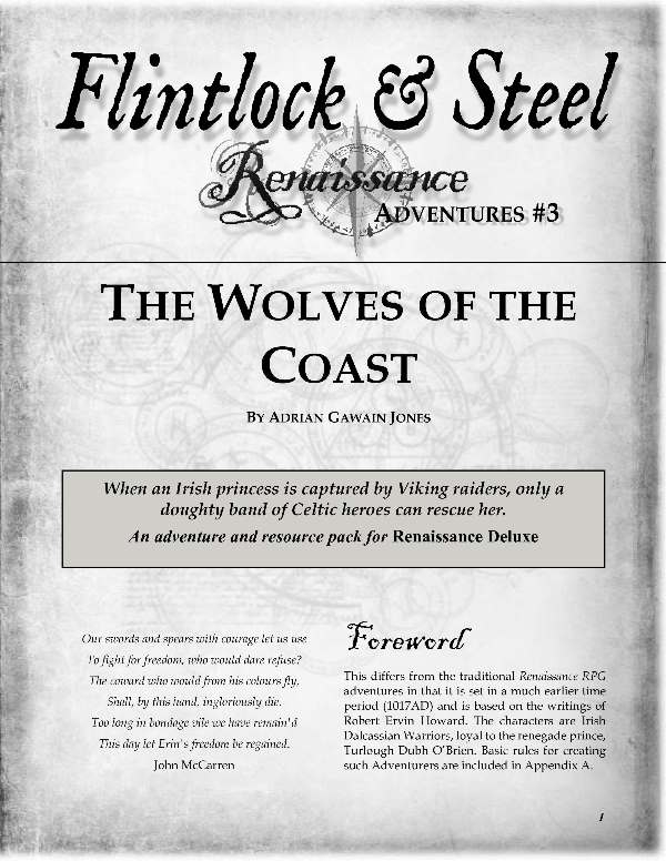 You may have thought Renaissance Deluxe was only useful for black powder games. Here, Adrian Jones demonstrates the system's flexibility, with a FREE one-shot adventure and resource pack, pitting Irish Adventurers against Viking raiders...